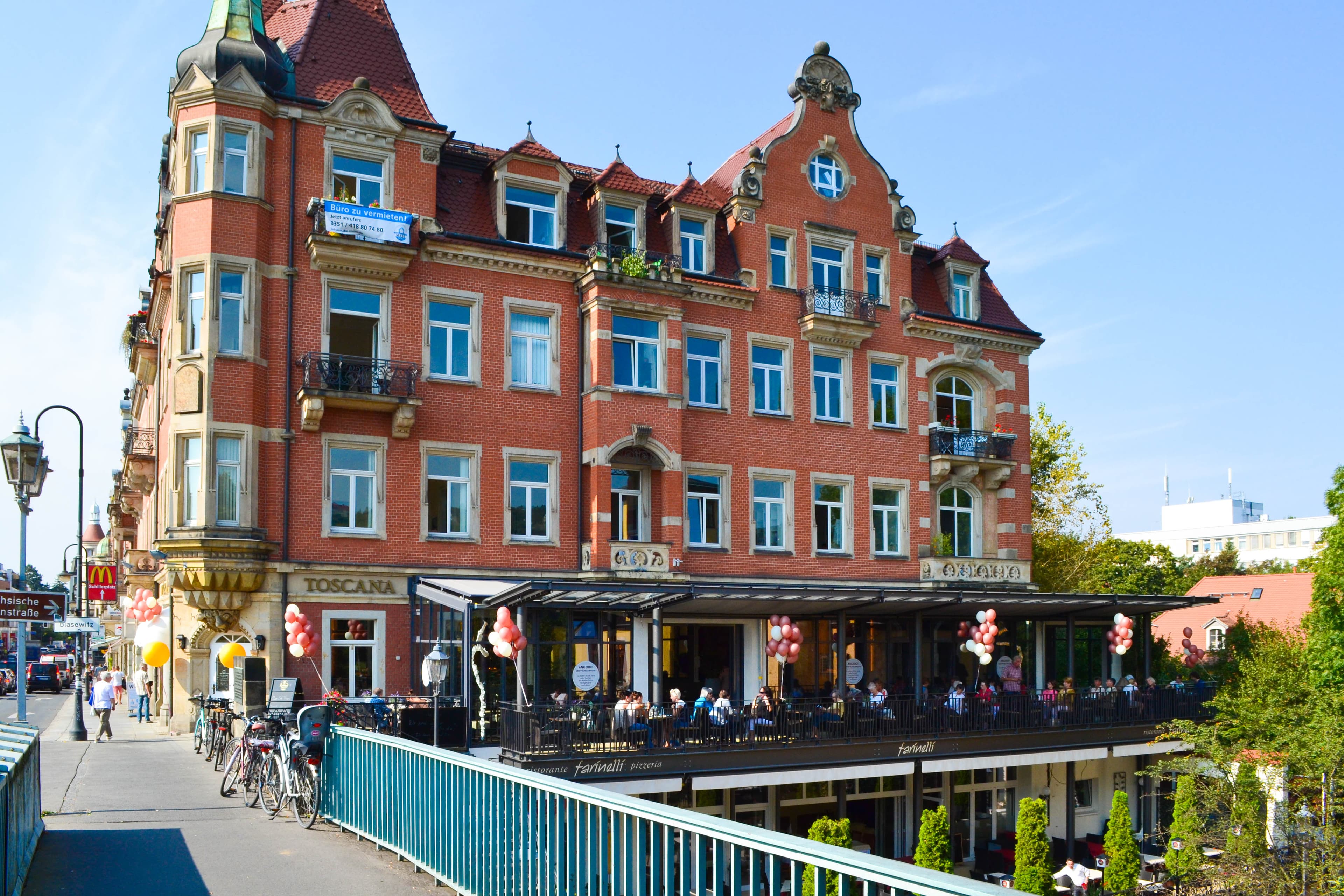 2015 startete der Anbau des Genussbalkons. Er verfügt über 45 wunderschöne Außensitzplätze - eine gestalterische Aufwertung, von dem das gesamte Café profitiert. Im Anschluss erfolgte die umfassende Innensanierung. Das Einzeldenkmal Café Toscana konnte im August 2016 in neuem Glanz wiedereröffnen.